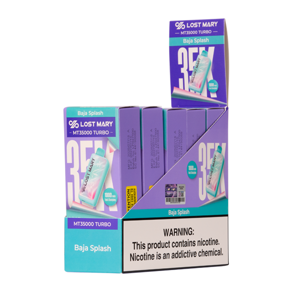 - Flavor: The Baja Splash Lost Mary MT35000 Turbo features a popular flavor that fuses bold tropical beverage notes.